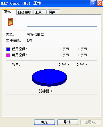 把手机的MMC卡插到电脑上,双击打开时,提示未格式化。很奇怪,一直在用啊,怎么可能没有格式化呢?看了一下MMC卡的属性,发现其文件格式居然不是FAT,而是RAW。如图所示。