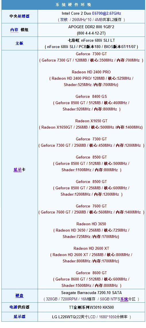 因为本次测试的主要目的是为了帮助消费者根据自身需要正确选择500元以下的显卡,所以这次测试与以往有些不同,特别对测试部分做出如下说明。
