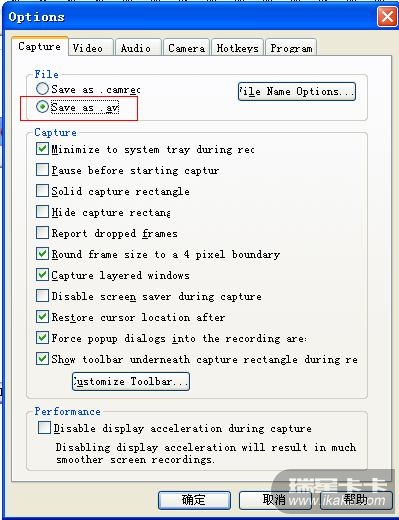 出现文件保存对话框,选择AVI,文件名英文或数字,不要用汉字。