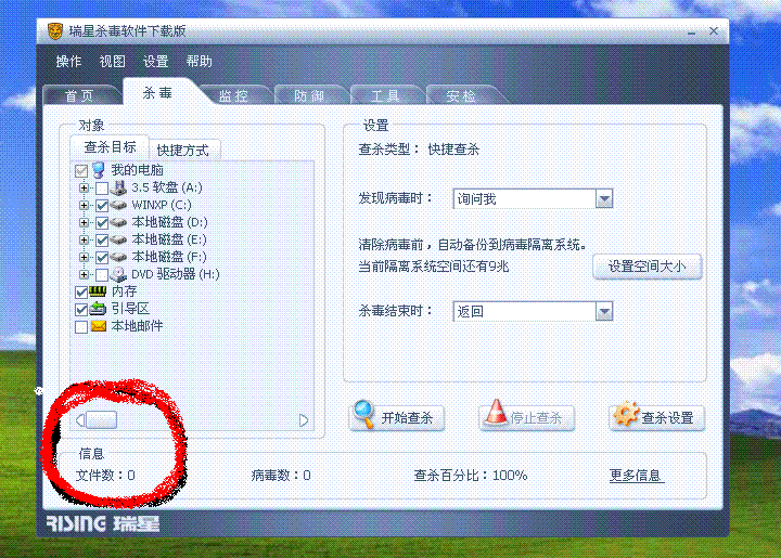 [求助] 急!!!瑞星杀毒时信息显示为0