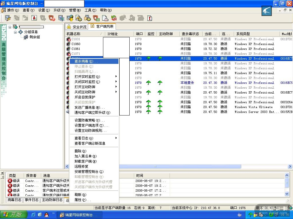 单位的瑞星网络版升级后不知道为什么漏洞扫