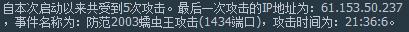 可是我这一天要被攻击好几十次这是为什么呢? 还有就是防火墙禁止PING入要好几十次!!IP地址哪的都有 美国 新疆 福建 好多好多啊 !! 高人 帮帮我吧!!!!!