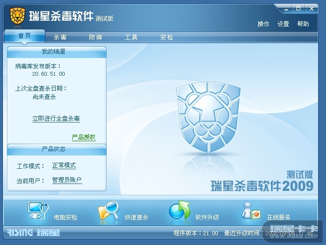 瑞星软件版本:瑞星2009 程序版本:21.00