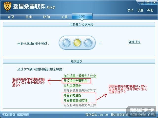 瑞星2009测试版问题反馈