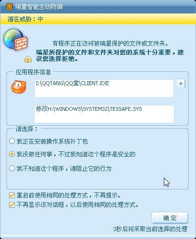 这里并不是瑞星对狙剑没有任何防御,而是我一路绿灯让狙剑可以在当前系统可以正常运行。