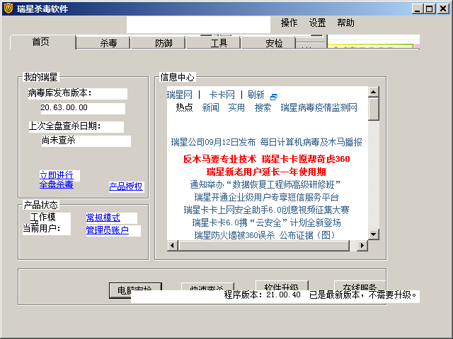 回复:这就是Rising2009?我是第一次用瑞星,这也太让我失望了```