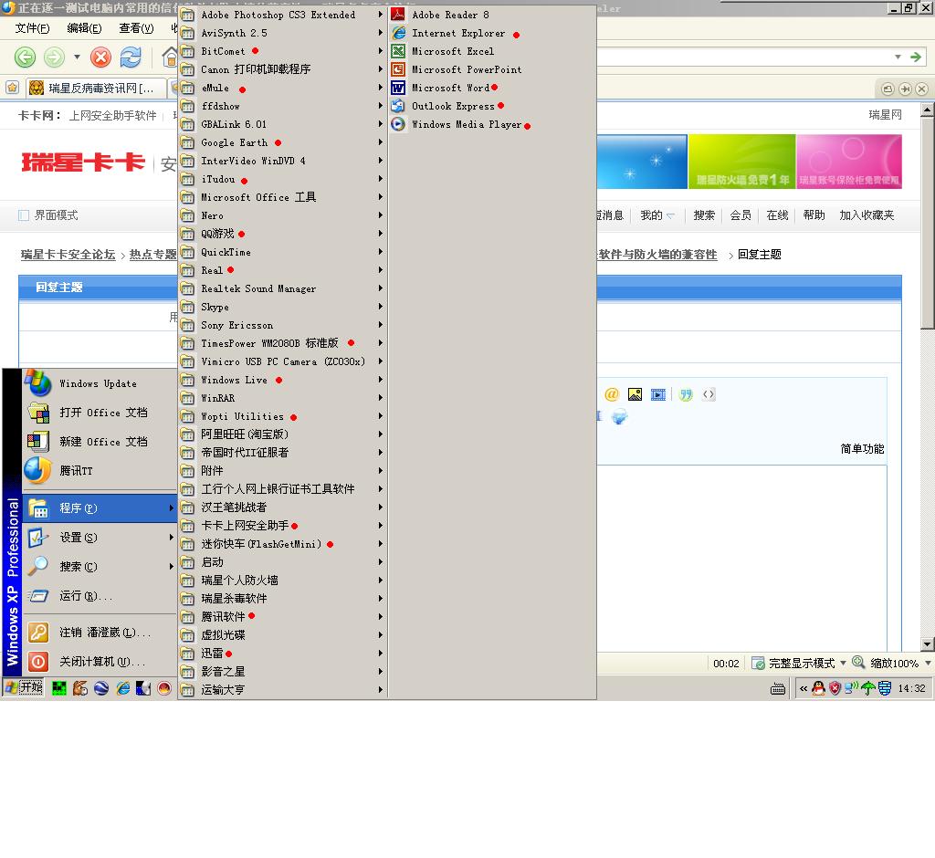 正在逐一测试电脑内常用的信任软件与防火墙的兼容性