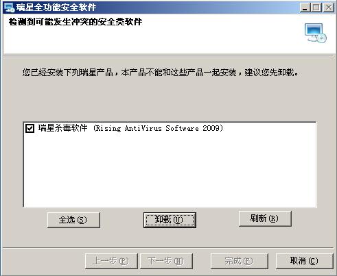 出现问题前的操作步骤:卸载瑞星2009重启安装
