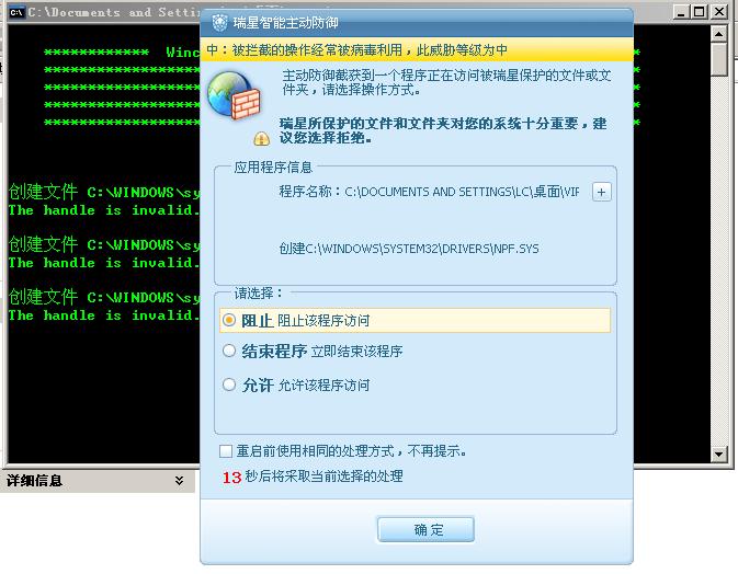 上面说的 病毒创建的文件和驱动什么的 如果放行后