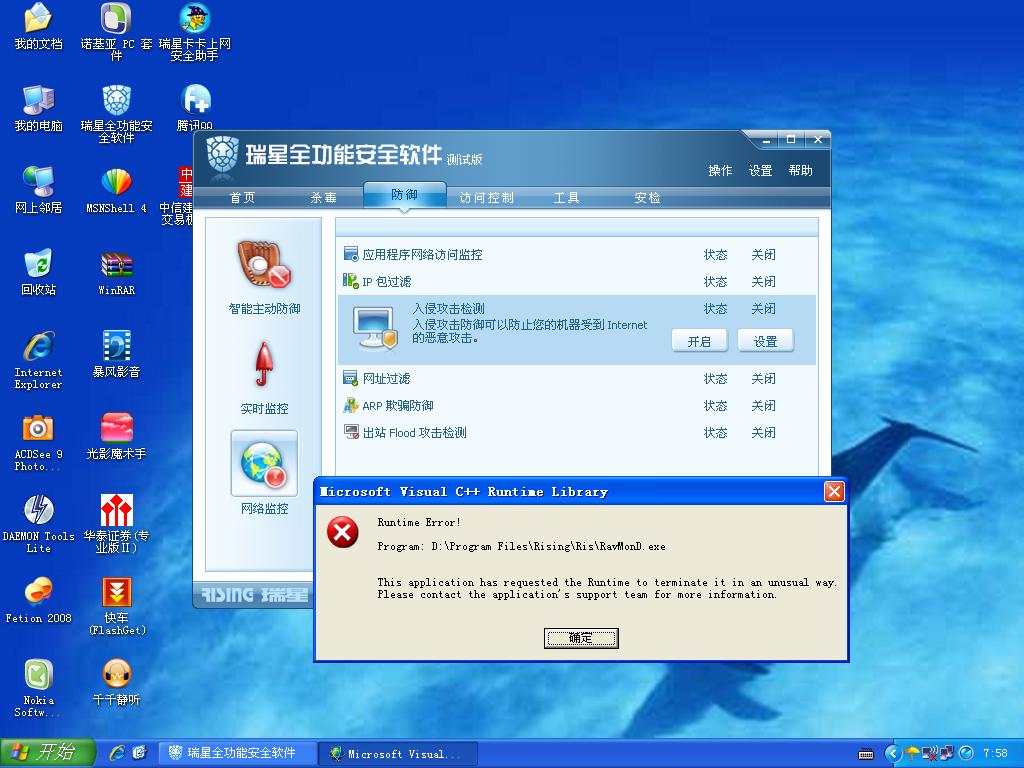 涉及的其它软件版本:microsoft visual C++ Runtime Library 2005