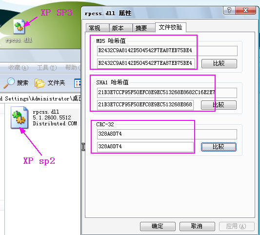 XP SP2  上的rpcss.dll  和 XP SP3 上的 rpcss.dll 是完全一致的。