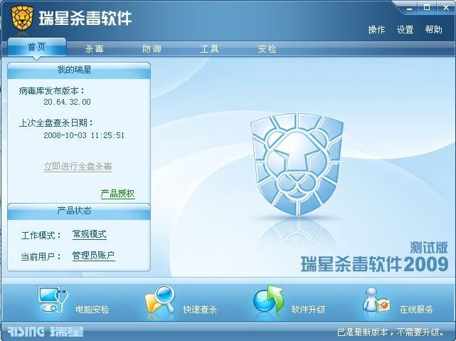 瑞星软件版本:20.64.32.00