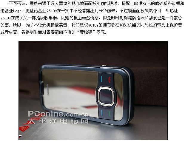 倾慕时尚的延续 诺基亚镜面滑盖7610s评测