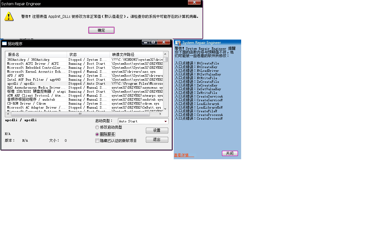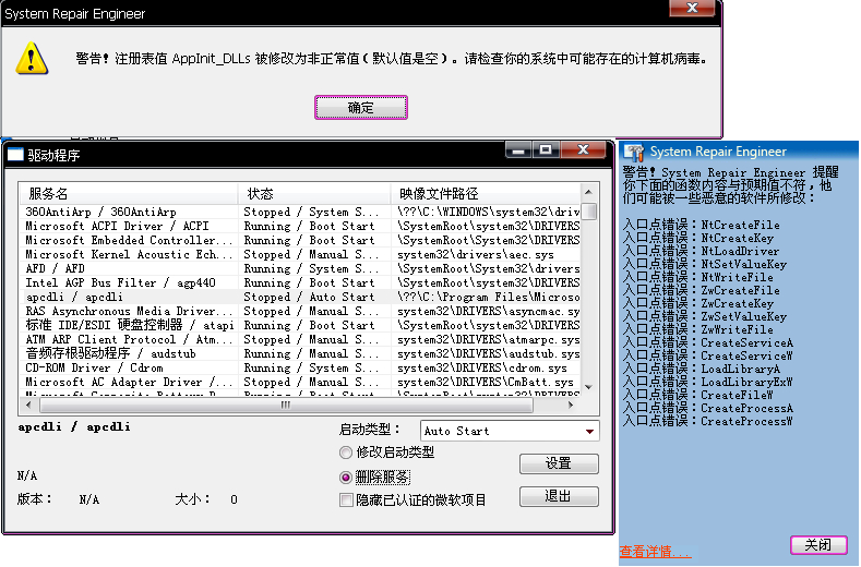 2、运行SRENG扫描工具,启动项目--服务--驱动程序,删除以下驱动程序: