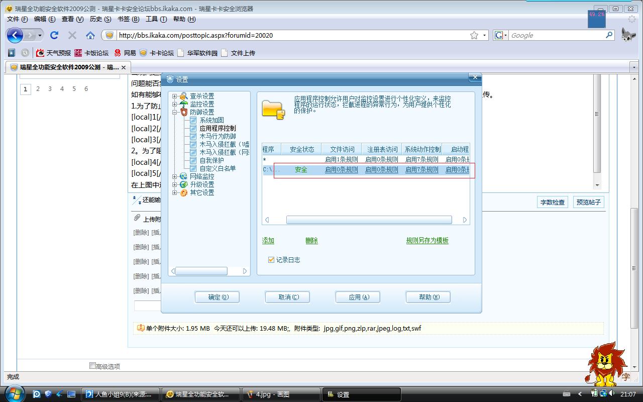 用ris的主防保护了卡卡的文件和阻止了qq新闻的弹出。异常---无效