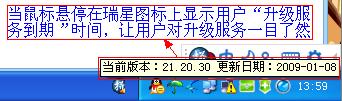 。希望瑞星在软件的界面和托盘图标上显示用户的升级服务截止时间(如下图):