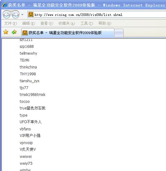 积极参与奖500名,奖品:瑞星杀毒防火墙组合版年卡(虚拟卡)