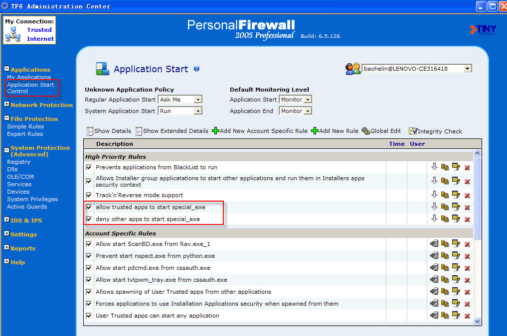 操作4:特殊组管理规则设置(这是考验用户功夫的工作。弄不好就会杀敌1000,自伤800。不少人开始热衷于HIPS,最后将其彻底请出系统,大多是这部或类似这部的工作没做到位。)