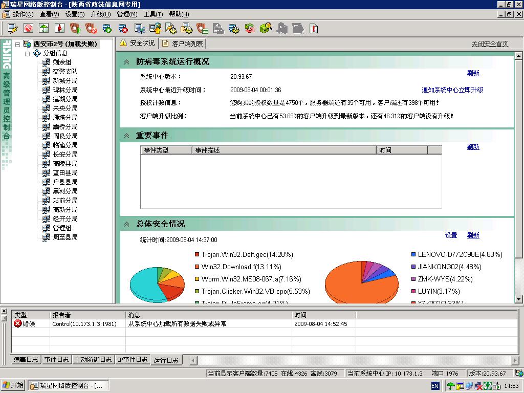我手动升级瑞星网络版系统中心后,二级系统中心出现错误,提示“从系统中心加载所有数据失败或异常”,试着重启瑞星各项服务没有解决,请工程师和各位高手帮忙解决。
