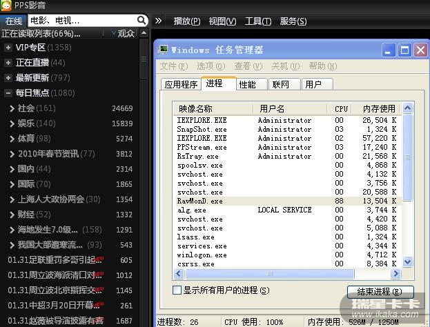 一打开pps,Ravmond.exe就CPU占用80%以上 跟死机了一样