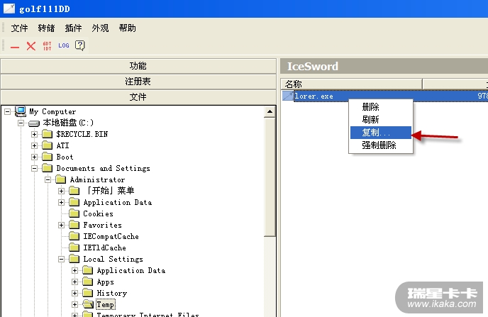 8、拷贝loader.exe到windows目录时,文件名取为explorer.exe: