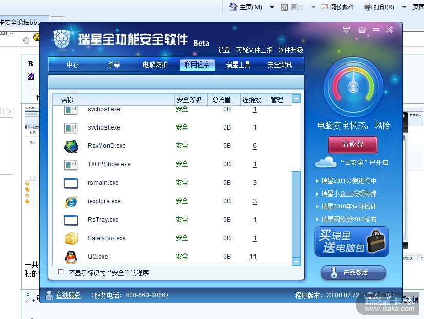 这是用瑞星2011查看的联网程序,刚开机,没什么异常!