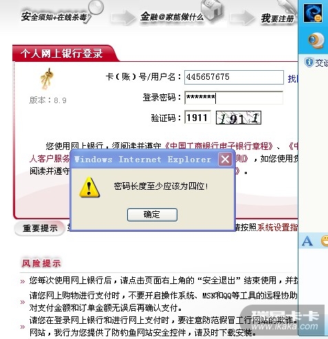 工行客服说不会出现这种提示,密码最少也是6位的,我想说这提示怎么出来的