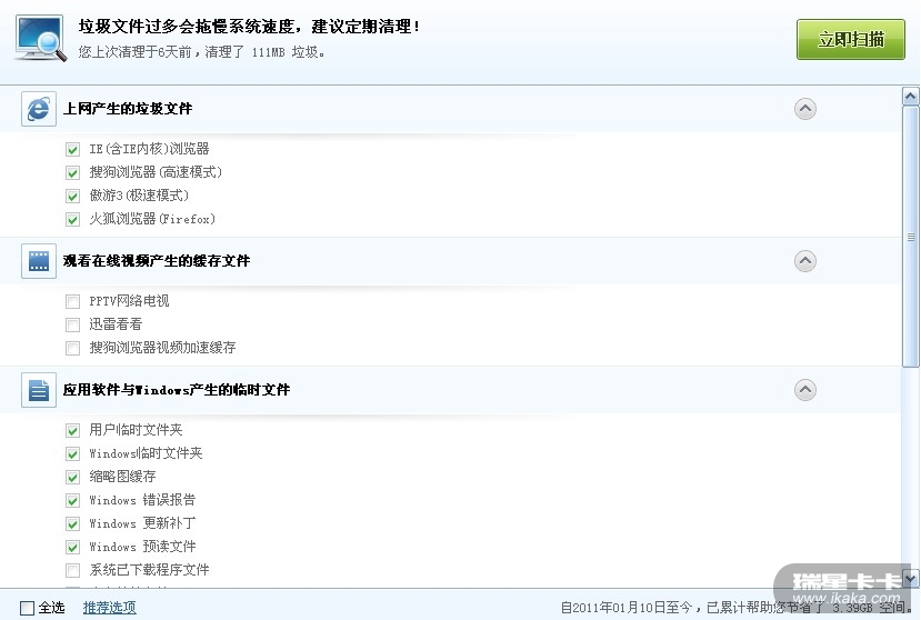 建议能加入更多的除了系统垃圾以外其它软件所产生的垃圾文件清理,并能根据垃圾项进行很好的分类,参见下金山卫士的如图