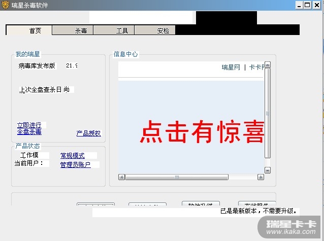 这是我从正版瑞星2008中 升级到最新版本的瑞星 重启电脑后 点击就发现这样子