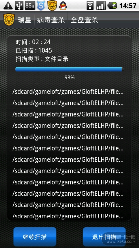 作为一款软件就应该完善每个部分,今天再次使用瑞星手机安全安卓版(最新版本),比以前版本好了很多,但是老毛病没有改,我手机中共有6000多个文件,在进行全盘扫描时,当扫描到1000多文件时,已经显示扫描了98%,然后后面文件就是2%了,这应该算是一个显示的BUG吧。