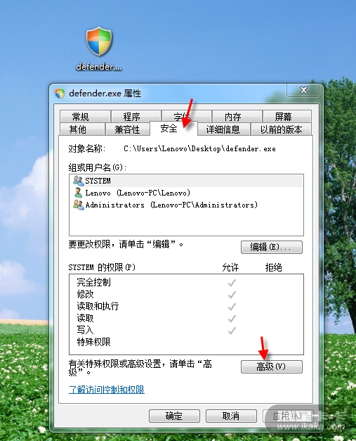 4、重启系统后,将此病毒文件的操作权限恢复成这样(图8)。