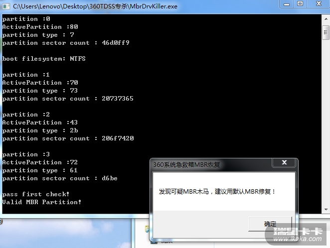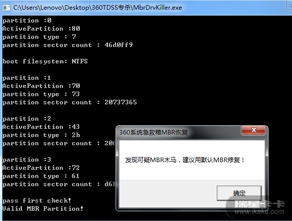 这个TDL4(dll.exe)改写MBR的确切证据在此(见下图),但360这个专杀就是检测不到。