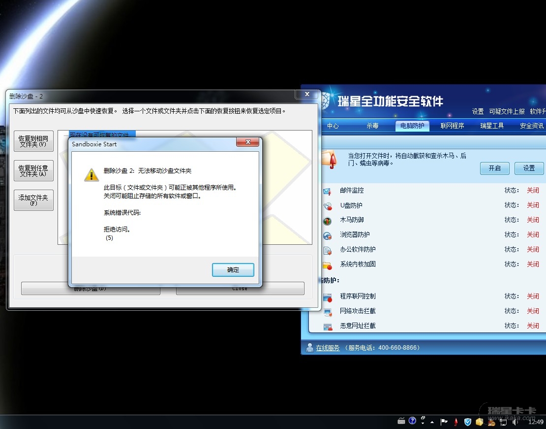 sandboxie下使用瑞星无法删除希望在下个版本能够解决此问题...