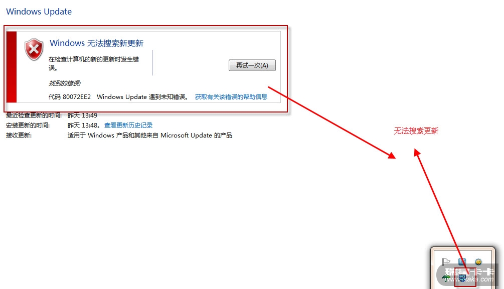 在防火墙开启时,不能进行Windows Update,检查更新时报 Windows Update 错误 80072ee2
