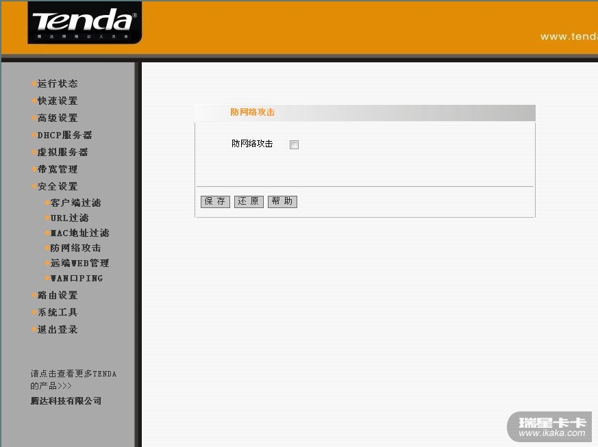 由于是内网,为了保证测试正常进行,我们把路由器的防网络攻击设置去掉,并且加上DMZ主机设置