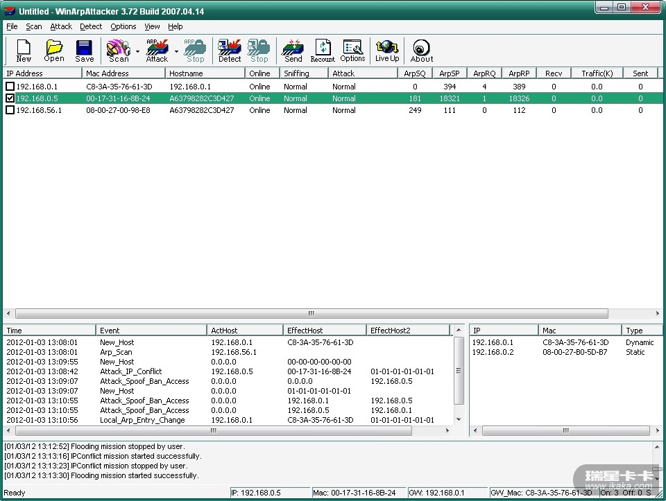 瑞星防火墙2012 ARP攻击测试!