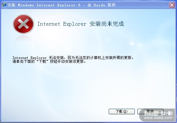 问题描述:在安装IE8。0的时候提示:无法安装下载IE更新。