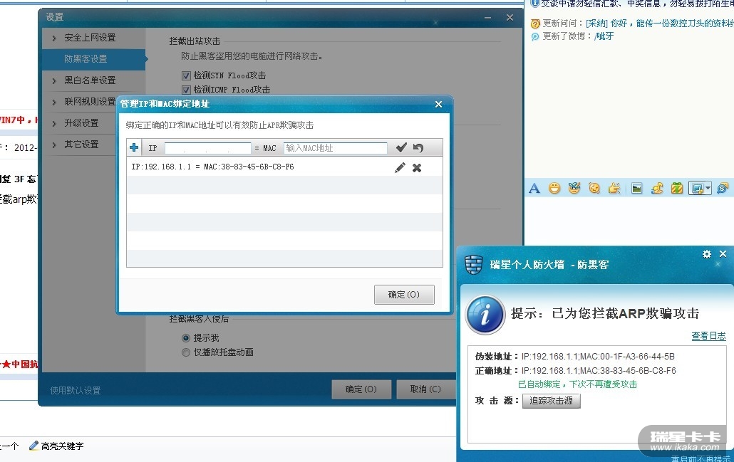 回复:关于防黑客功能(防火墙的ARP攻击防御)导致不能上网改进的建议
