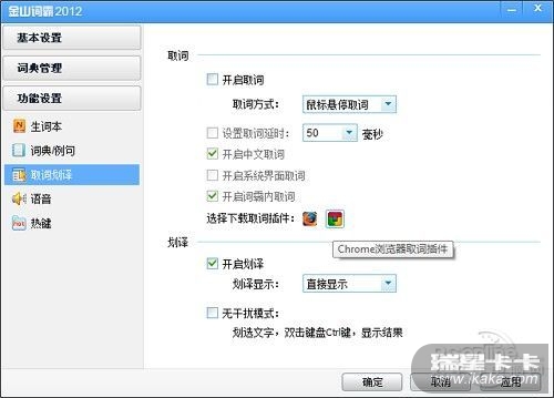 例如,金山词霸2012、有道词典