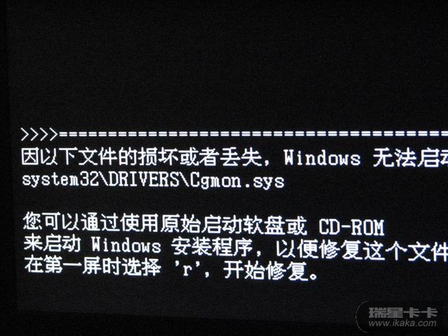 嗯,我也想到了,不过是用老爸电脑,看了下那驱动盘,结果真的有cgmon.sys,DOS下拷贝到故障的这台机子上,现在好了,