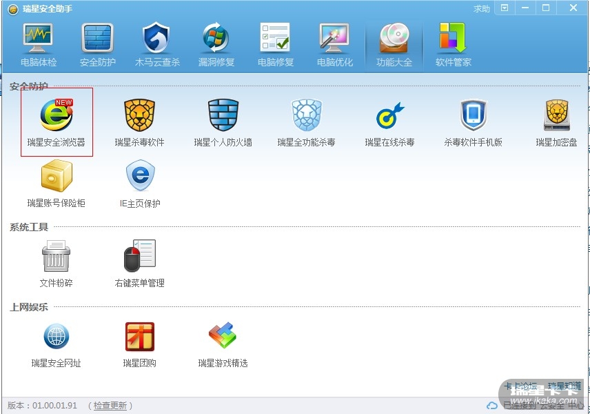在试用瑞星安全助手的时候,发现了一处不合理的设置,不是瑞星浏览器改了图标嘛!为什么还在安全助手里使用旧的浏览器图标。