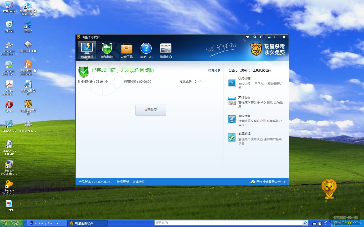 环境:Acronis True Image 保护; 先关闭V16。在 Try& Decide下运行病毒。