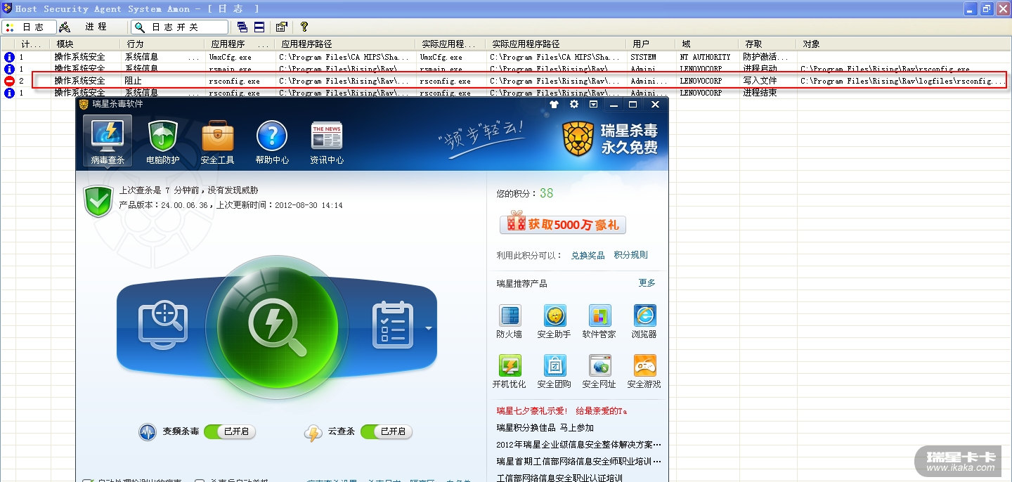 我在CAHIPS 中对C盘的读写删操作设置了如下限制(图1)。V16的 rsconfig.exe并未放到受信组中,因此,点击V16的“病毒查杀设置”时肯定会遇到问题。