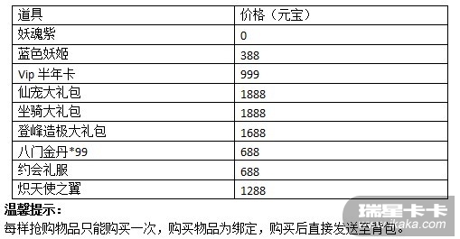 四级淬炼石*1、妖灵残魂*3、鲜花99朵*1
