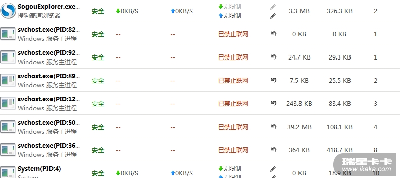 我手动设置了禁止系统程序 svchost 联网,但一会儿功夫它就又消耗了几十兆流量,操作系统是win7详情如附件