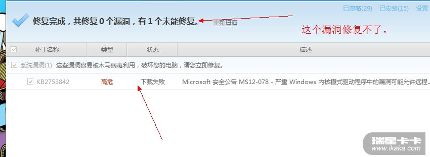 瑞星安全助手KB2753842这个漏洞修复不了,