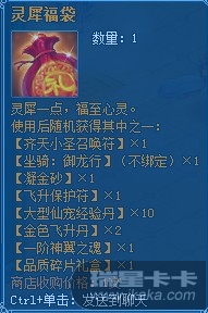 【小雏菊】:使用随机获得其中之一:果实加速仙露×1、大型仙宠经验丹×1、金色材料碎片×1、羽化水晶×1、小型兽魂经验丹×1、一锭银票×1