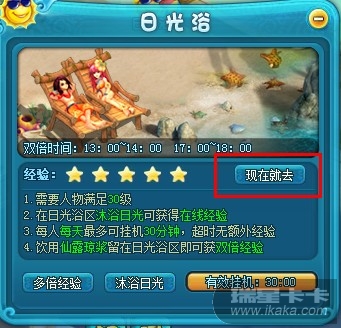 )优化日光浴双倍活动开启后,界面右上方将始终显示日光浴活动图标,一方面提醒玩家参与活动轻松获得经验奖励,一方面为玩家提供传送链接。