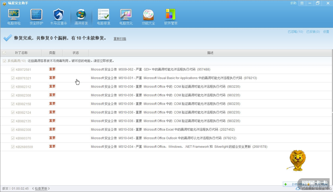 前一次因这种情况另外用WINDOWS XP 自动更新补漏,结果重新启动显示ntoskrnl.exe被 更改或丢失,无法启动,WINPE启动发现该文件没有丢失,只是最后修改日期非常接近,只能重新装系统,还是这样,修补了部分漏洞后就剩这堆补不上了。
