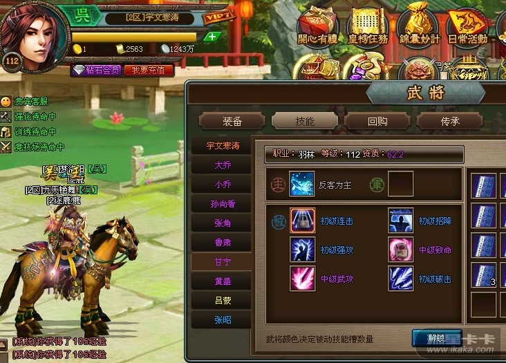 猫版你好,武将传承出现问题,传承的武将在下拉列表里没有显示(甘宁),其他的都显示正常,请版主大大帮忙查查是这么回事。我是2区宇文寒涛,谢谢!!!附图:传承界面,甘宁没有显示。